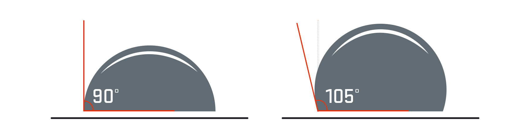 Hydrophobic performance is all about preventing water, dirt and oil build-up on the lens. Better performance means you don’t have to clean your lenses as often, and when you do, they’re easier to clean. Hydrophobic performance is measured in terms of the contact angle of the water as it drops on the surface of the lens; this test determines overall effectiveness of the hydrophobic coating in repelling water. A contact angle greater than 90 degrees is said to be hydrophobic. The higher the value, the more aggressive the angle—meaning the lens will be better at shedding water.